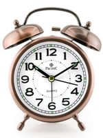 Klasyczny budzik marki Pacific zasilany baterią AA.