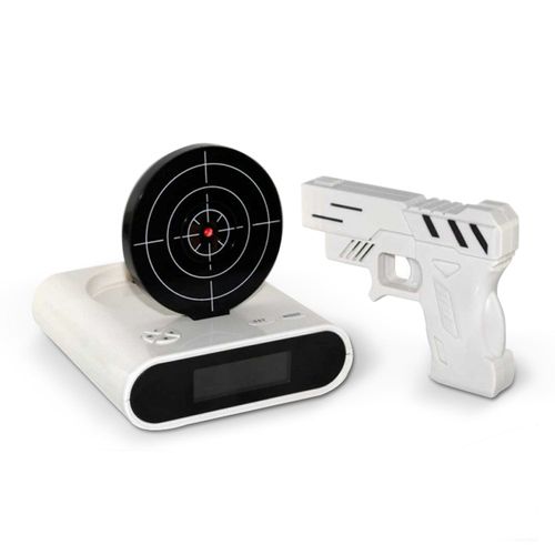 Pilot wygląda jak prawdziwy pistolet! Strzelić co rano do swojego budzika – to musi być ciekawe doświadczenie… I co najważniejsze – działa! Budzik od razu zamilknie, jeśli celnie trafisz do tarczy! Ale to nie wszystko – strzelanie do budzika będzie bardzo przyjemne i nigdy Ci się nie znudzi, bo możesz sam nagrywać dźwięki alarmu. Wystarczy wybrać melodię lub odgłos, które są dla Ciebie wyjątkowo irytujące, a pobudka będzie z pewnością skuteczna!