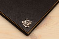 Piękna twarda okładka w ciemno brązowym kolorze, gładkie kartki.