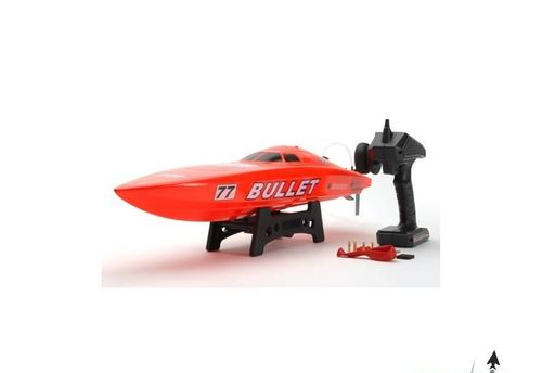 Zestaw zawiera kompletnie złożony model łodzi RC z zainstalowanym silnikiem trójfazowym i regulatorem, serwem i czterokanałowym odbiornikiem RC 2.4 GHz. Pistoletowy 2-kanałowy nadajnik RC 2.4 GHz, zestaw kluczy imbus, stojak. Akumulatory (2x) ani ładowarka nie wchodzą w skład zestawu.