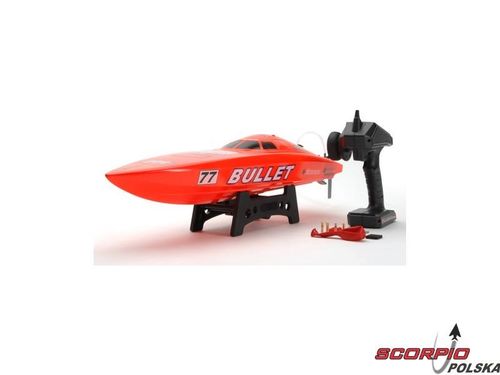 Zestaw zawiera kompletnie złożony model łodzi RC z zainstalowanym silnikiem trójfazowym i regulatorem, serwem i czterokanałowym odbiornikiem RC 2.4 GHz. Pistoletowy 2-kanałowy nadajnik RC 2.4 GHz, zestaw kluczy imbus, stojak. Akumulatory (2x) ani ładowarka nie wchodzą w skład zestawu.