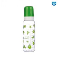 Wykonana z nowego, innowacyjnego surowca (Tritan), który jest bezpieczny dla dziecka i całkowiecie wolny od BPA (bisfenol A). Butelka jest trwała, bezpieczna, wygodna, o czytelnej skali. Spełnia najwyższe normy jakości. Atrakcyjne wzory i kolory przyciągają uwagę dziecka. Standardowo wyposażona w smoczek silikonowy, antykolkowy, okrągły o przepływie szybkim (12m+).