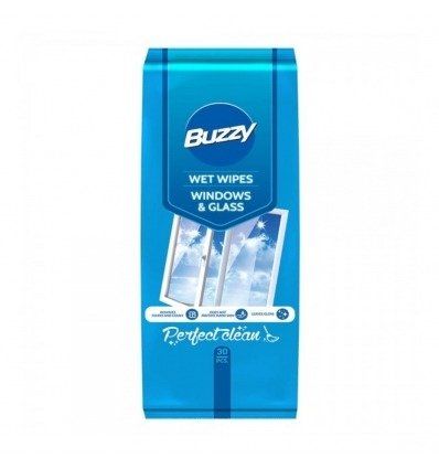 Chusteczki czyszczące marki Buzzy zostały nasączone specjalnym środkiem, który idealne oczyszcza szklane powierzchnie.