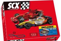 Zawartość zestawu1 x Ferrari F2008, 1 x ING Renault F-1, 10 x standardowy łuk, 6 x prostka standardowa, 3 x prostka 175mm, 1 x szykana duża, 1 x prostka zasilająca, 1 x zasilacz, 2 x podpora mostu, 10 x barierka, 10 x pobocza dla standardowego łuku, 2 + 2 końcowe pobocza, 2 x sterownik, 1 x Pit Box.