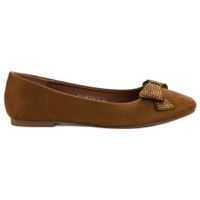 Brązowe baleriny marki Best Shoes to wygodne i stylowe obuwie na co dzień. Wykonane z wysokiej jakości skóry ekologicznej, zapewniają maksymalny komfort noszenia oraz znakomity wygląd. Subtelne kokardki z kryształkami nadają całości dziewczęcy charakter. Buty sprawdzą się znakomicie w casualowych stylizacjach z jeansami lub zwiewnymi spódnicami.