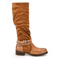 Wysokie kozaki na płaskiej, odpowiednio twardej podeszwie, utrzymane w pięknym odcieniu brązu, to bardzo klasyczna propozycja dla pań ceniących sobie tradycję, a także wygodę. Buty zostały ocieplone kocem obuwniczym, który zapewnia komfort i doskonałą ochronę przed chłodem niezależnie od panującej aury.