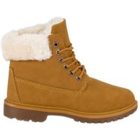 Modne, damskie traperki firmy Seastar, w kolorze żółtym. Buty idealnie nadają się na chłodniejsze dni w sezonie jesienno-zimowym. Futerko i gruba podeszwa z bieżnikiem zapewniają maksimum ciepła i wygody. Cholewka wykonana z ekologicznej skóry nadaje im elegancji i modnego wyglądu zgodnego z aktualnymi trendami.