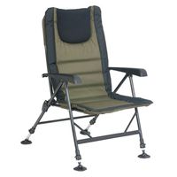 Wygodny i lekki fotel wędkarski z podłokietnikami. Jest zaprojektowany dla wędkarzy lubiących wygodę. Zrobiony na solidnych ramach o dużej wytrzymałości. Regulacja wysokości nóg i kąt oparcia.