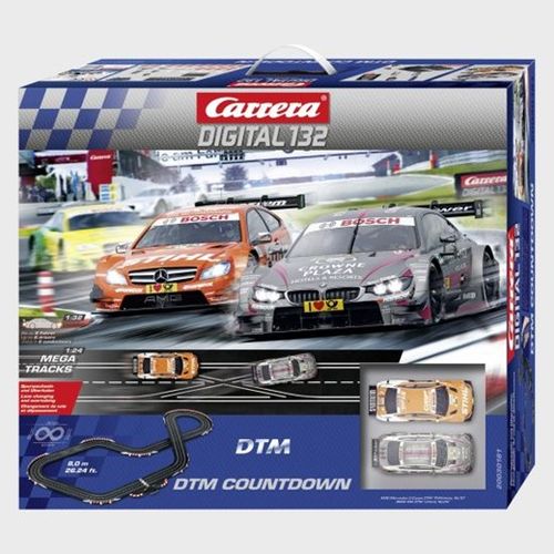 CARRERADigital 132 TOR - DTM Countdown 30181 Jeszcze większy realizm w wyścigach dzięki nowej technologii. Nowy system DIGITAL 132 umożliwia zawodnikom doświadczenie prawdziwych emocji związanych z wyścigami: do 6 samochodów na torze, możliwość wyprzedzania czy podejmowania taktycznych decyzji. W zestawie znajduje się: 1 BMW M4 DTM J.Hand, No.04 1 AMG-Mercedes C-Coupe DTM R.Wickens, No.10 11 standardowych prostych 1 szyna przyłączeniowa z elementem Control Unit 1 zwrotnica krzyżowa (podwójna ) 10 zakrętów 1/60° 2 kontrolery prędkości 1 transformator Zatrzaski elementów torów Bandy ochronne Szczotki stykowe Instrukcja obsługi Akcesoria Carrera DIGITAL 132 to seria, w której tory wykonane są w skali 1:24, natomiast samochody w skali 1:32. Jednocześnie mogą uczestniczyć tutaj w wyścigu aż 6 samochodów. Radość i satysfakcję z rywalizacji sportowej może czerpać również pojedynczy gracz, który ma okazję zmierzyć się z zaprogramowanym samochodem treningowym, nowością jest również możliwość zabawy z samochodem SAFETY CAR! System DIGITAL 132 jest kompatybilny ze standardowymi prostymi, zakrętami i zwężeniami serii Evolution, można go rozbudowywać na wiele sposobów. Dodatkowo wyposażony został w specjalne sekcje zmiany toru, pozwalające na rozwinięcie maksymalnej prędkości oraz charakterystyczne akcesoria dodatkowe m.in.: elektroniczny licznik okrążeń czy pit stop podnoszący realizm wyścigów dzięki konieczności robienia postojów w celu uzupełnienia zapasów paliwa. Prędkość przejazdu przez pit stop jest ograniczona za pomocą elektroniki umieszczonej w tzw. Black Boxie, który steruje wszystkimi procesami i parametrami wyścigu. Seria DIGITAL 132 to samochody cyfrowo kontrolowane i indywidualnie kodowane, co umożliwia jednoczesne poruszanie się aż 6 aut na jednym torze jazdy (w jednym rowku). Wysokiej klasy, oryginalne wyścigówki zostały wyprodukowane w technice tampodruku z ogromną dbałością o szczegóły. Wszystkie samochody tej serii przemieszczają się na specjalnie skonstruowanych prowadnicach, mocowanych do zawieszenia. Dzięki zastosowaniu w systemach DIGITAL 132 w pełni cyfrowego sterowania samochodami, uzyskano efekty oddające realizm emocjonujących i pełnych rywalizacji wyścigów samochodowych. Zabawka dla dziecka: 8 lat + Skala Toru: 1:24 Skala Samochodów: 1:32 Wymiary: 321 x 152 cm Długość toru: 8 m Wymiary opakowania: 64,50 x 73,00 x 21,00 cm Waga (z opakowaniem): 12,25 kg