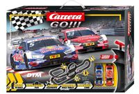 W zestawie znajduje się: - Audi RS 5 DTM "M. Ekstrm, No.5" 64157 - Audi RS 5 DTM "R.Rast, No.33" 64132 -1 Szyna przyłączeniowa -1 Transformator -2 Kontrolery - wiadukt - dwa pochyłe zakręty - dwie pętle - licznik okrążeń - zapasowe wymienne szczotki stykowe i prowadnice - instrukcja PL Rozmiary po rozłożeniu: 220 x 98 cm Długość toru: 8,9 m Carrera GO!!! to system startowy do Świata Wyścigów Carrera, stworzony w skali 1:43. Wszystkie zestawy z tej serii zawierają kontroler turbo doładowania, a także oryginalne, licencjonowane samochody, wykonane z ogromną dbałością o szczegóły. Do każdego z nich dołączony jest zawsze dodatkowy zestaw szczotek stykowych. Systemy torów są niezwykle łatwe w montażu i demontażu, dzięki unikalnemu systemowi zatrzasków.