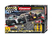 Mercedes-AMG GP vs. Red Bull Racing to wspaniały pojedynek w Carrera GO!!! Kierowcy w każdym wieku mogą zmierzyć się z tymi eleganckimi maszynami prędkości Formuły 1. Fani mogą wybierać między faworytem "Mercedes AMG F1 W09 EQ Power +, L.Hamilton nr 44" a "Red Bull Racing RB14, M.Verstappen nr 33".