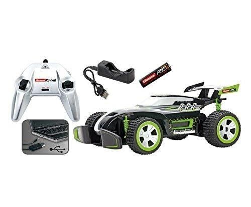 Pojazd Carrera RC Buggy 1:20. Posiada ergonomiczny kontroler (baterie w zestawie), pełny zakres sterowania (we wszystkich kierunkach), prędkość max. 12 km/h, nadwozie wykonane z wysokiej jakości tworzywa, zawieszenie na sprężynach, technologia 2,4GHz, czas ładowania: 90 min., czas jazdy ok. 20 min., długość: 28 cm.
