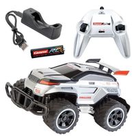 Maksymalna Prędkość + Długi Czas Zabawy = Najwyższa Jakość RozrywkiWyjątkowo wysoki poziom rozrywki Carrera RC został uzyskany poprzez kombinację maksymalnej prędkości, długiego czasu zabawy, szybkiego ładowania baterii, wysokiej jakości materiałów oraz najnowszych technologii. To wszystko stawia produkty Carrera RC na najwyższej półce w tym segmencie zabawek elektronicznych. Carrera RC przeniesie Cię w niepowtarzalny świat wyścigów samochodowych bez konieczności wychodzenia z domu! Asortyment Carrera RC obejmuje szeroki wybór samochodów wyścigowych i terenowych, a także łodzi motorowych i modeli latających. Produkty Carrera gwarantują najwyższą jakość zabawy pasjonujące wyścigi, niesamowite ewolucje, szybkość i perfekcyjną kontrolę pojazdu, czyli wszystko, czego ojciec i syn mogą wymagać od tych produktów. Carrera RC to synonim jakości, szybkości i najnowszych technologii. Te podstawowe wartości znajdują swe odbicie również w polityce marketingowej tej marki.Ergonomiczny kontroler w technologii 2.4GHzPełny zakres sterowania (we wszystkich kierunkach)Prędkość max.: 12 km/hNadwozie wykonane z wysokiej jakości tworzywaCzas ładowania: 90 min.Czas zabawy: ok. 20 min.AkumulatorŁadowarkaDługość: ok 28 cm