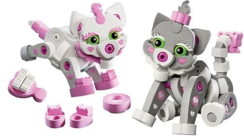 Koty i kocięta są wielkimi towarzyszami, a teraz dzięki tej zabawce budowlanej będziesz się z nimi bawił, dosłownie. Wystarczy zbudować kocięta zgodnie z instrukcjami lub stworzyć własne ulubione kotki i uzupełnij miską mleczną, pędzelkiem i kapciami dołączonymi do kompletu.Tak czy inaczej, będzie mruczenie! 180 sztuk 1 szczegółowa instrukcja wiek 5-12