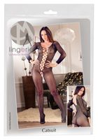 A sensual, seamless and crotchless catsuit with 7/8 sleeves. With stretchy lacing that can be worn at the front or back. With a reinforced toe part and a seductive round neckline. It is perfect for steamy moments and can also be worn during sex.