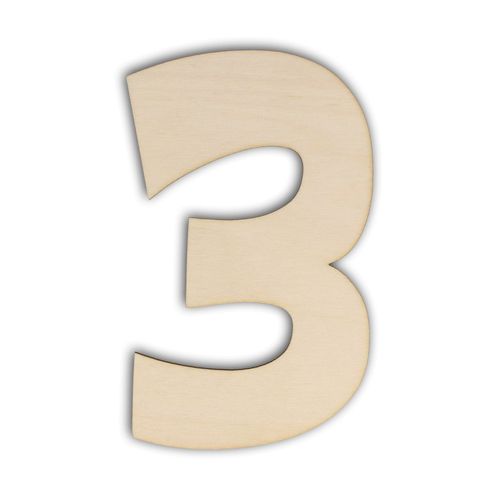 Cyfra 3 - duża wykonana ze sklejki brzozowej nadająca się do ozdabiania techniką decoupage.