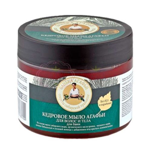 Skład INCI: Aqua, Pinus Sibirica Oil (olej syberyjskiego cedru), Sorbitol, Sodium Cocoyl Isethionate, Sodium Methyl Cocoyl Taurate, Stearic Acid, Guar Hydroxypropyltrimonium Chloride, Empetrum Sibiricum Extract (bażyna bajkalska), Juniperus Oxycedrus Extract (jałowiec), Organic Arnica Montana Oil (arnika), Saponaria Officinalis Extract (mydlnica lekarska), Pinus Sylvestris Tar (Empetrum), Cedrus Deodara Oil (cedrowy olejek eteryczny), Guaiacum Officinale Balm (gwajakowiec), Caramel, Chlorophylin Copper Complex, Benzyl Alcohol, Sorbic Acid, Benzoic Acid.