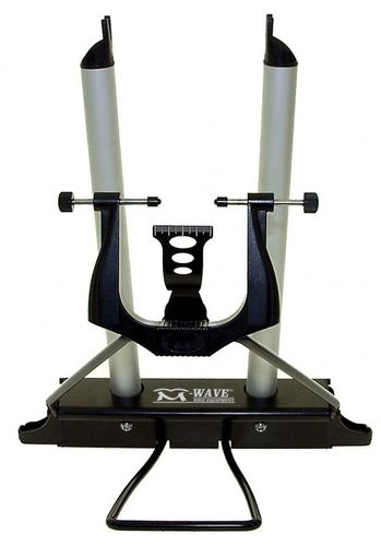 Profesjonalna składana centrownica rowerowa, doskonała do domowego i sklepowego warsztatu. Wykonana ze stali i aluminium. Bardzo dokładna do centrowania kół. Posiada regulowany rozstaw ramion do kół przednich i tylnich. Ułatwia kontrolę wysokości oraz bicia. Kolor czarno-srebrny. Montaż piast o szerokości od 91-155mm i średnicy ośki max. 12mm. Bicie boczne reguluje się za pomocą aluminiowych wysięgników zakończonych plastikową nakładką