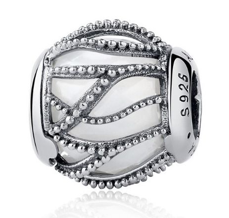 Srebrna zawieszka Charms " Białe Szkło " do biżuterii modułowej