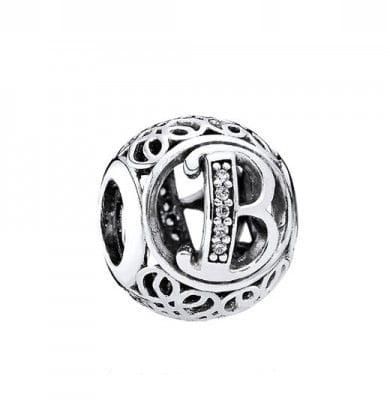 Uroczy, srebrny charms z dużą literą „B”. Ułóż swoje inicjały lub wyjątkową wiadomość łącząc go z innymi charmsami z literami alfabetu.