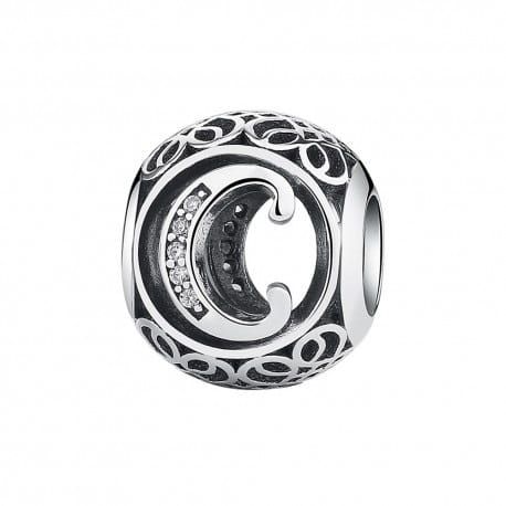 Uroczy, srebrny charms z dużą literą „C”. Ułóż swoje inicjały lub wyjątkową wiadomość łącząc go z innymi charmsami z literami alfabetu.