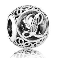 Uroczy, srebrny charms z dużą literą „L”. Ułóż swoje inicjały lub wyjątkową wiadomość łącząc go z innymi charmsami z literami alfabetu.