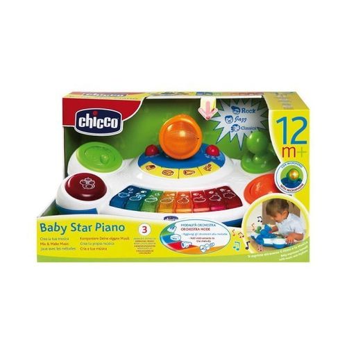 Pianino elektroniczne z wbudowanym świetlnym mikrofonem posiada cztery różne funkcje: przycisk bębna, wałek z efektami dźwiękowymi oraz świetlnymi, joystick z zabawnymi odgłosami i gramofon wydający dźwięk zdartej płyty.Pianino posiada 3 tryby odtwarzania:- Skale muzyczną do ćwiczenia i komponowania własnej muzyki- Dziewięć nagranych melodii- Specjalny tryb orkiestra pozwalający dziecku na dodanie lub wykluczenie instrumentów oraz melodii których chcą używać i podoba im się najbardziej Dodatkowo po naciśnięciu jednego z czterech wbudowanych przycisków maluch może się przełączać na inne różne instrumenty muzyczneWiekod 1 rokuWymiaryop. 39x27x21 cm
