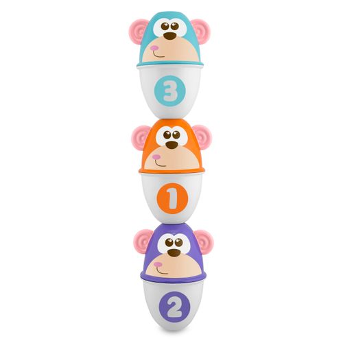 Kręgle Fit&Fun to pierwszy zestaw kręgli dla dzieci od 12 miesiąca życia, dostarczający niezwykłych emocji po każdym celnym uderzeniu w 6 kolorowych, zabawnych kręgli z motywami małpek.