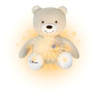 Miś - przytulanka z ukrytym w brzuszku projektorem światła i muzyki!Miękki, delikatny i miły w dotyku pluszak z ukrytym w brzuszku mechanizmem, dzięki któremu czas, który dziecko spędza z maskotką upływa przy akompaniamencie przyjemnej muzyki i efektów świetlnych. Przez brzuszek misia emitowane są efekty świetlne: intensywna, rozgwieżdżona poświata, delikatny blask, wewnętrzne światełko, idealne jako nocna lampka. Dźwięki, których maluch słucha nieprzerwanie przez 30 minut to muzyka klasyczna (Bach i Beethoven), muzyka nowoczesna, soft rock, jazz oraz dźwięki natury.Efekty uruchamia naciśnięcie przycisku z serduszkiem, umieszczonego na brzuszku misia.Zabawkę można prać w pralce.Wiekod 0 miesięcy
