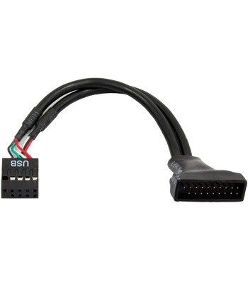 Dzięki tej przejściówce możliwe jest przekształcenie 19-pinowego żeńskiego gniazdae USB 3.0 na złącze 9-pinowe żeńskie USB 2.0.