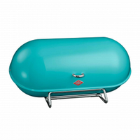 Chlebak BreadBoy marki Wesco to wyjątkowy akcent w stylu retro, który podkreśli charakter każdej kuchni. Nadaje się do przechowywania chleba, ciasta lub jakichkolwiek innych artykułów, które szybko tracą świeżość. Otwory wentylacyjne w tylnej obudowie zapewniają optymalną cyrkulację powietrza i pozwalają na dłuższe zachowanie świeżości przechowywanych w nim produktów. Masywne, metalowe zawiasy gwarantują płynne otwieranie i zamykanie pokrywy, a poręczny uchwyt - jej podnoszenie. Całość osadzona jest na chromowanej podstawie, która zapewnia doskonałą stabilność chlebaka.