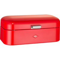 Chlebak Grandy marki Wesco to wyjątkowy akcent w stylu retro, który podkreśli charakter każdej kuchni. Nadaje się do przechowywania pieczywa, ciasta lub jakichkolwiek innych artykułów, które szybko tracą świeżość. Otwory wentylacyjne w tylnej obudowie zapewniają optymalną cyrkulację powietrza i pozwalają na dłuższe zachowanie świeżości przechowywanych w nim produktów. Masywne, metalowe zawiasy gwarantują doskonałą stabilność chlebaka oraz płynne otwieranie i zamykanie pokrywy, a duży, metalowy uchwyt - wygodne jej podnoszenie.