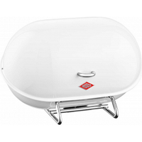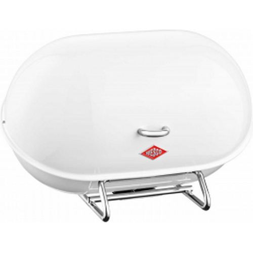 Chlebak Single BreadBoy marki Wesco to wyjątkowy akcent w stylu retro, który podkreśli charakter każdej kuchni. Nadaje się do przechowywania chleba, ciasta lub jakichkolwiek innych artykułów, które szybko tracą świeżość. Otwory wentylacyjne w tylnej obudowie zapewniają optymalną cyrkulację powietrza i pozwalają na dłuższe zachowanie świeżości przechowywanych w nim produktów. Masywne, metalowe zawiasy gwarantują płynne otwieranie i zamykanie pokrywy, a poręczny uchwyt - jej podnoszenie. Całość osadzona jest na chromowanej podstawie, która zapewnia doskonałą stabilność chlebaka.