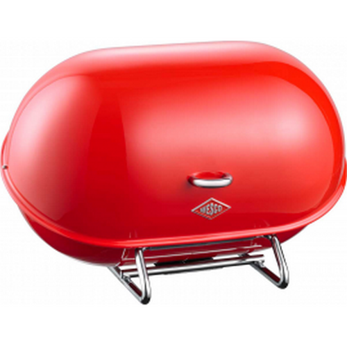 Chlebak Single BreadBoy marki Wesco to wyjątkowy akcent w stylu retro, który podkreśli charakter każdej kuchni. Nadaje się do przechowywania chleba, ciasta lub jakichkolwiek innych artykułów, które szybko tracą świeżość. Otwory wentylacyjne w tylnej obudowie zapewniają optymalną cyrkulację powietrza i pozwalają na dłuższe zachowanie świeżości przechowywanych w nim produktów. Masywne, metalowe zawiasy gwarantują płynne otwieranie i zamykanie pokrywy, a poręczny uchwyt - jej podnoszenie. Całość osadzona jest na chromowanej podstawie, która zapewnia doskonałą stabilność chlebaka.