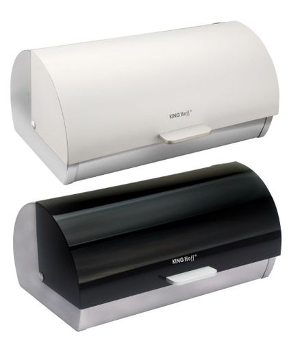 Chlebak ze stali węglowej w kolorze srebrnym. Pokrywa pokryta emalią w kolorze białym lub czarnym