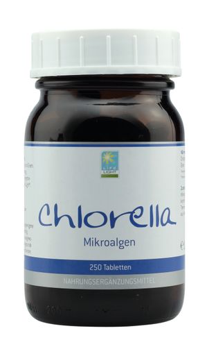 Składniki (tabletki): mikroalga (Chlorella pyrenoidosa) 99,8 %, substancja przeciwzbrylająca: dwutlenek krzemu.