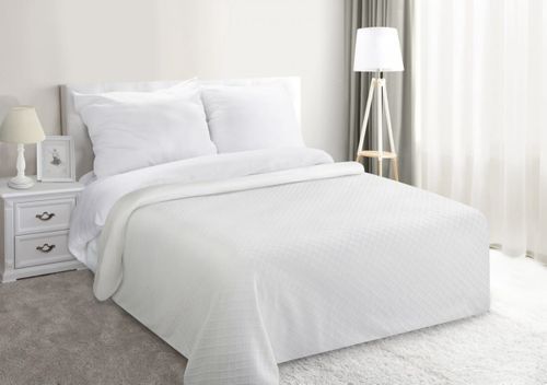 Elegancka narzyta o klasycznym stylu, wytłaczana w kratkę. Spód z gładkiego, przyjemnego w dotyku polaru. Mozna prać w pralce automatycznej. Bardzo lekka. , szerokość: 170 cm, długość: 210 cm, kolor KREMOWY. Gramatura: 370+160 GSM. Skład: 100% poliester