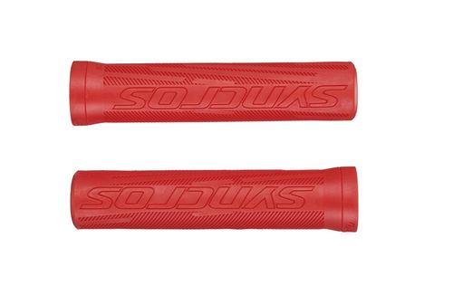 Chwyty-gripy SYNCROS PRO czerwone z unikalnej kompozycji materiałowej redukującej drgania i zapobiegającej drętwieniu dłoni. Trzymaj się pewnie roweru i utrzymuj pełną kontrolę.
