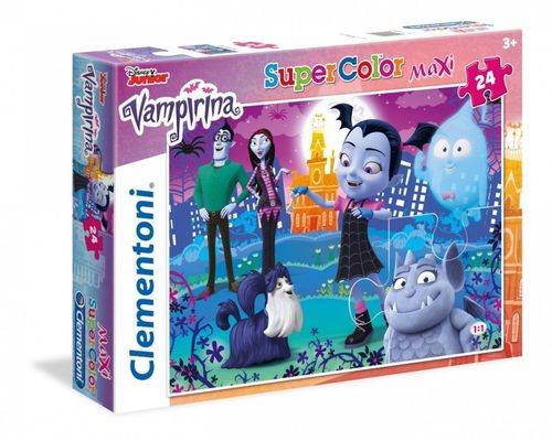 Puzzle 24 elementy MAXI, VampirinaPuzzle Clementoni towarzyszą dziecku w każdej fazie jego wzrostu, pomagając mu rozwijać zręczność manualną i zmysł obserwacji. Jakość materiałów i wyjątkowa technika druku gwarantują, że ilustracje bedą zawsze piękne, żywe i błyszczące, a zabawa nigdy się nie znudzi.Puzzle Super Color - Wyjątkowe barwy druku uzyskano dzięki wykorzystaniu technologii Super Kolor.Wiekod 3 lat