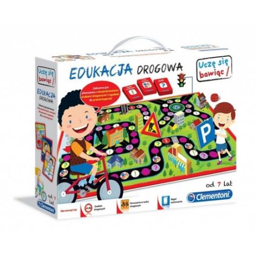 CLEMENTONI Edukacyjna Drogowa 60233 Zabawna gra planszowa z niespodziankami, znakami drogowymi i regułami do przestrzegania! Dzieci przesuwają pionki po planszy i zależnie od tego na jakie pole trafią, odpowiadają na sympatyczne pytania, obserwują zachowania na obrazkach i rozpoznają znaki drogowe. Gracz, który jako pierwszy dotrze z domu do szkoły, wygrywa. Dobrej zabawy! Zawartość:- 1 plansza- 66 kart- 33 znaki drogowe- 1 szkoła- 4 pionki- 1 kostka- 1 instrukcja Wiek: 7+ Waga do wysyłki: 1,10 kg (z opakowaniem)