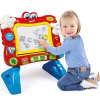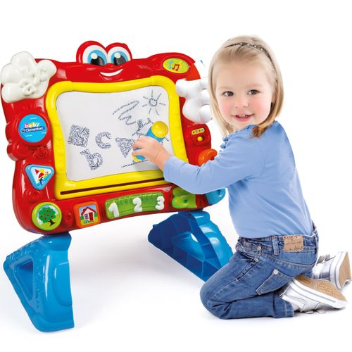 Zabawka 2 w 1: tablica znikopis dla najmłodszych i bogate centrum rozrywki.Wiele funkcji edukacyjnych: uczy liczb, liter, kształtów, kolorów i podstaw języka angielskiego.Nogi są przenośne i mogą być łatwo montowane w pionie lub w poziomie. Powierzchnia do pisania lekko podniesiona i nachylona.Funkcje wielu melodii, zabawy i muzyki.