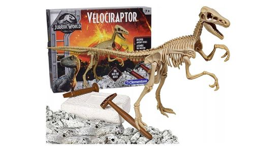 W zestawie znajduje się "skamielina" Velociraptora! Wydobądź ją za pomocą młotka oraz dłuta, a następnie złóż w całość, tworząc swoją własną, wyjątkową wystawę niczym z muzeum.