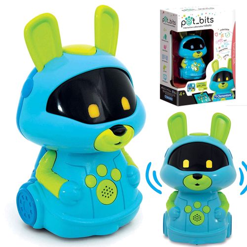 Królik-Bit słyszy dźwięki i reaguje na klaskanie rąk małego dziecka. Ten zabawny królik porusza się i tańczy w zależności od tego, ile razy klaszczesz w dłonie. Dziecko może również dobrze się bawić rozmawiając z własnym Bitem! Fantastyczny mały robot rejestruje głos i odtwarza go robo-głosem. Każdy robot ma swoją osobowość i współdziała z innymi, używając specjalnego połączenia.