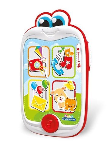 To zabawny, elektroniczny telefon komórkowy z ilustrowanym świetlnym ekranem, który imituje smartfony dorosłych.