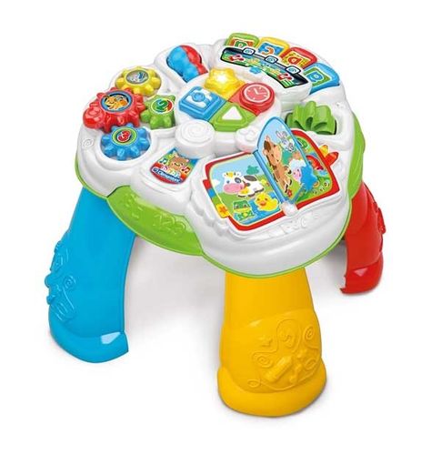 Super-kolorowy stolik z dużą ilością aktywności edukacyjnych, aby nauczyć się cyfr, literek, kształtów i kolorów, nazw zwierząt i dźwięków.