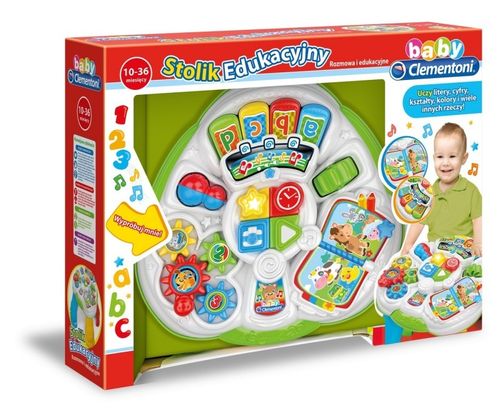 Stolik edukacyjny- Książeczka pomaga dzieciom rozpoznawać zwierzęta i ich dźwięki, blat wprowadza je w świat muzyki i uczy pierwszych liter, przekładnie odkrywają pierwsze cyfry i razem z innymi działaniami mechanicznymi, zachęcają do rozwijania swoich umiejętności motorycznych.- Super-kolorowy stolik z dużą ilością aktywności edukacyjnych, aby nauczyć się cyfr, literek, kształtów i kolorów, nazw zwierząt i dźwięków.- Dużo zabawnych efektów świetlnych, wesołych piosenek i rymowanek, aby stymulować zmysły i rozwijać umiejętności manualne u małych dzieci.Wiekod 10 miesięcy