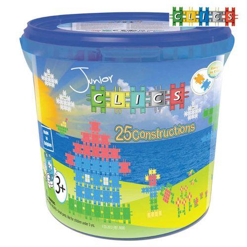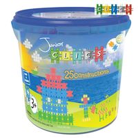 Clics Miękkie Klocki Junior Duże Wiaderko 300elSeria JUNIOR to absolutna nowość sezonu 2013/2014 w ofercie CLICS.Główną zaletą tych zestawów, jest większa elastyczność oraz miękkość klocków,co pozwala na zabawę najmłodszym dzieciom (3+).W celu urozmaicenia zabawy opakowania zawierają nieskomplikowane, koloroweinstrukcje do budowania. Ciepła pastelowa barwa klocków oraz łatwośćłączenia to kolejny element, zaprojektowany specjalnie dla maluchów.Klocki konstrukcyjne dla kreatywnych dzieci - najmłodszych milośnikówklocków Clics. Zawartość opakowania:- 260 klocków CLICS Junior- 40 akcesoriów- naklejki- plany budowy 25 konstrukcji + praktyczne zamykane pudełko z rączką...
