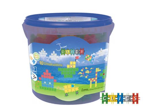 Clics Miękkie Klocki Junior Wiaderko 158elSeria JUNIOR to absolutna nowość sezonu 2013/2014 w ofercie CLICS. Główną zaletą tych zestawów, jest większa elastyczność oraz miękkość klocków,co pozwala na zabawę najmłodszym dzieciom (3+).W celu urozmaicenia zabawy opakowania zawierają nieskomplikowane, koloroweinstrukcje do budowania. Ciepła pastelowa barwa klocków oraz łatwośćłączenia to kolejny element, zaprojektowany specjalnie dla maluchów.Klocki konstrukcyjne dla kreatywnych dzieci - najmłodszych miłośnikówklocków Clics. Zawartość opakowania:-120 klocków CLICS Junior-38 akcesoriów- naklejki -plany budowy 10 konstrukcji + praktyczne zamykane pudełko z rączką...Wielkość opakowania: 24cm / 20cmWiek: 3+