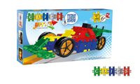 Belgijskie klocki CLICS to masywne i trwałe klocki wykonane z plastiku . W odróżnieniu od tradycyjnych plastikowych klocków łączonych "na cegłę" przy klockach CLICS zabawa polega na połączeniu klocków "zawiasami", czyli krawędziami elementów.Taki sposób łączenia daje możliwość wykonania płaszczyzny, którą można kilkoma ruchami uformować i stworzyć sztywną bryłę. W pewnych przypadkach możliwe jest także uzyskanie ruchomych fragmentów konstrukcji, co bez specjalnie uformowanych klocków w tradycyjnych rozwiązaniach jest praktycznie niemożliwe. System CLICS pozwala stworzyć nie tylko pojazdy, krzesełka czy też słonia z ruchomą trąbą, ale nawet (przy większej ich ilości) zbroję dla małego rycerza lub suknię dla małej damy.....Zobaczycie, że klocki te świetnie wpływają na wyobraźnię oraz zdolności manualne każdego dziecka, a przy okazji dają im wiele radości.Zawartość opakowania:- 62 klocki CLICS- 8 osi- 4 koła ( alufelgi ! )- 1 komin- kolorowa obrazkowa instrukcja budowyłącznie 75 elementów