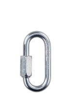 Wytrzymały, zakręcany karabinek wykonany ze stali cynkowanej.